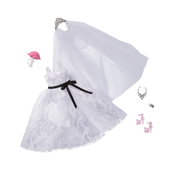 ブライダル衣装一式がセットになっています。結婚式の日のさまざまな物語を楽しむことができます。美しい白いウェディングドレス、ベール、そして特別なルックに仕上げる4つのブライダルアクセサリーを着せて楽しみましょう。このファッションはリサイクルプラスチックから作られた生地を使用しています。このファッションは再利用可能なビニールパッケージに入っています。ファッションやアクセサリの収納として使ったり、デコレーションしてオリジナルポーチとして使うことも可能です。